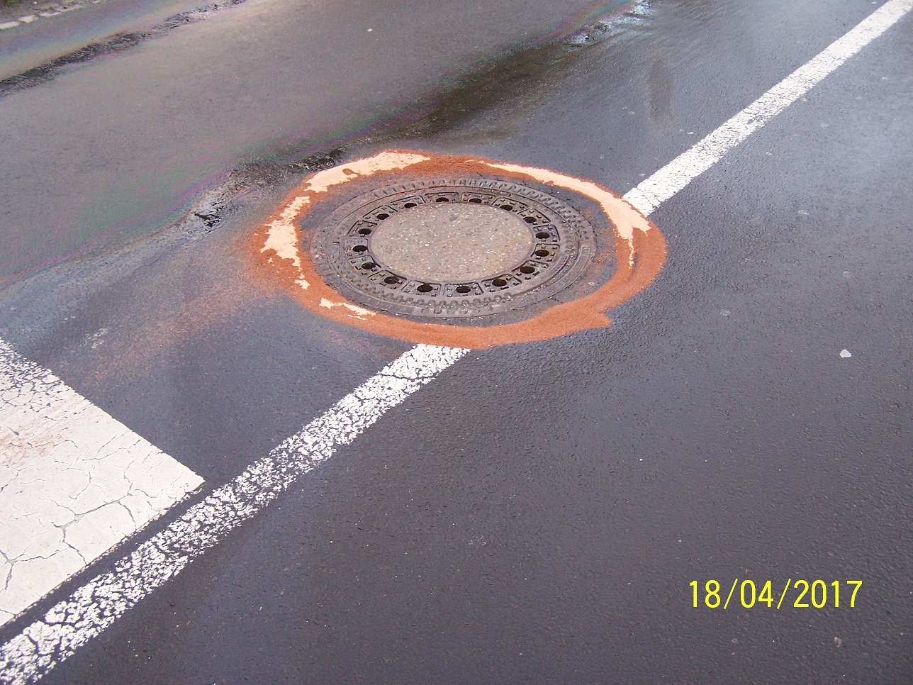 | Einsatzbericht: Auf der Schrammstraße gab es eine massive Ölspur. Da Öl drohte in die Kanalisation zu laufen, wurden mehrere Gullis und Einläufe dicht gesetzt. Außerdem wurde die Straße gesperrt. |